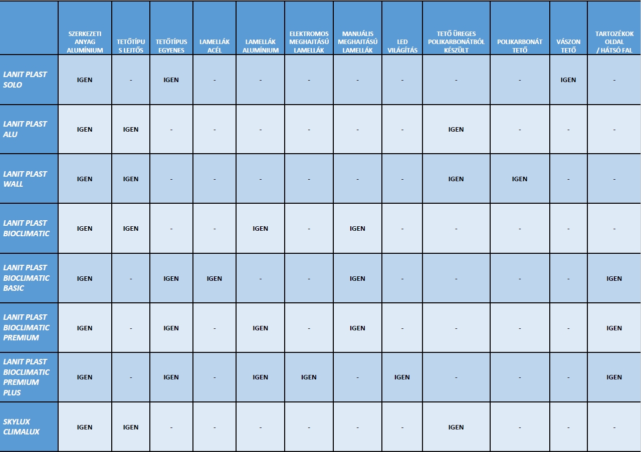 - alumínium konstrukció => hosszú pergola élettartam