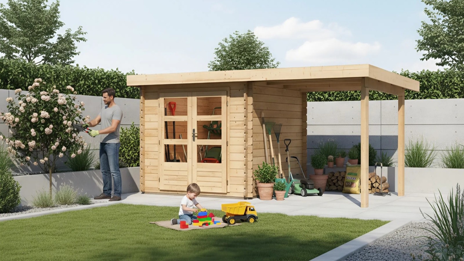 Egy faház alapmodellje kertjébe. Ez a modell lapos tetővel és dupla csuklós ajtókkal rendelkezik, mindkét szárnyban ablakkal. A ház építőanyaga 28 mm vastag, északi lucfenyőből tökéletesen mart faprofil. Bontott állapotban készletben szállítjuk. A sorozat nagy előnye a szabadalmaztatott 6-Plus sarokcsukló. Ezek együttesen nemcsak tartós és stabil konstrukciót, hanem robusztus összképet is biztosítanak. Ez garantálja a rendkívül egyszerű összeszerelést, amelyet bármely barkácsoló meg tud kezelni.