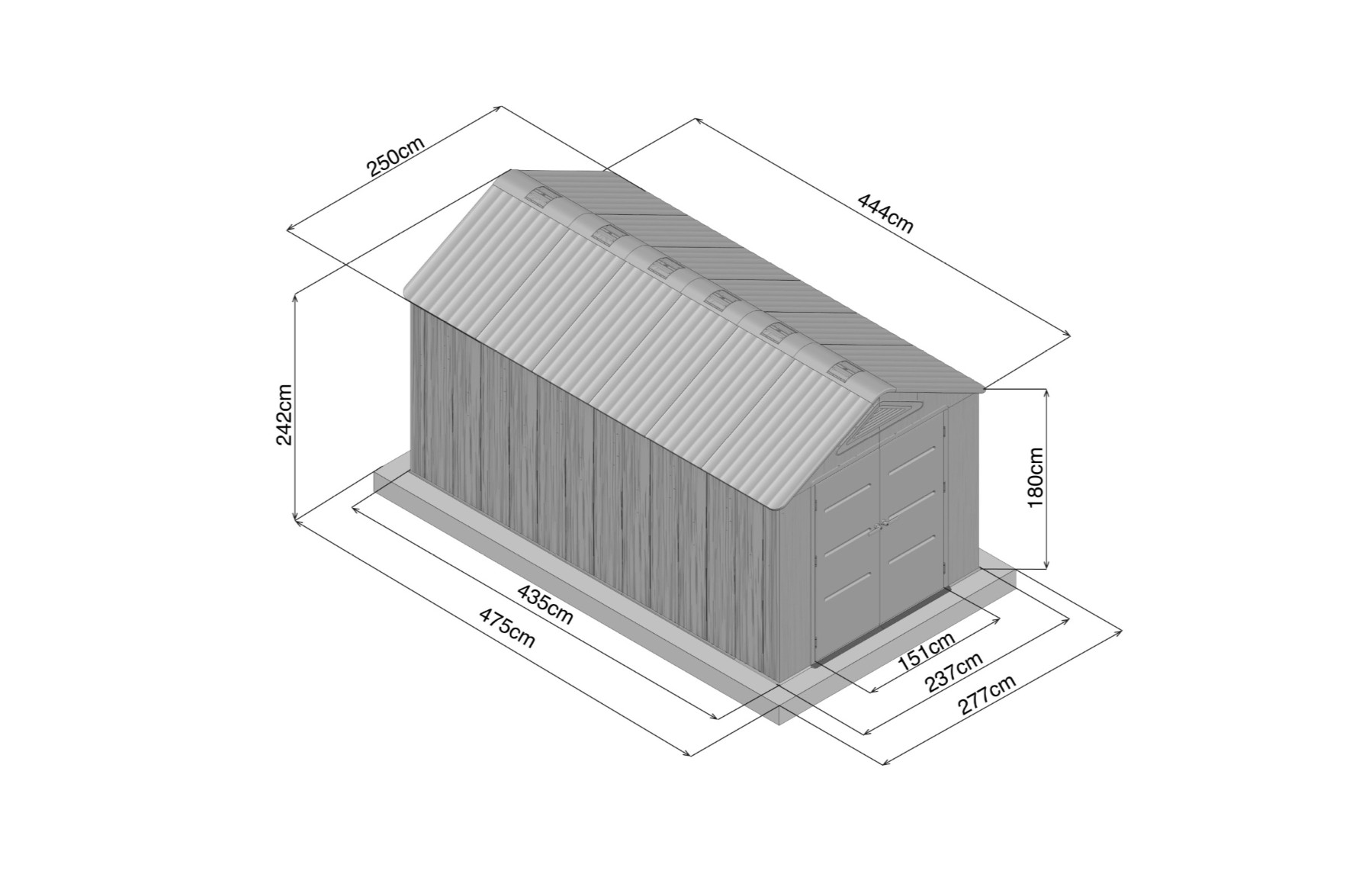 Robusztus "új generációs" kerti műanyag ház kertészeti, sport, medence, grillezési, kempingezési, autózási és egyéb szükségletek tárolására. Modern kialakítás, könnyű összeszerelés, egész éves használat. A kerti ház tartószerkezetű fémből készült, dupla falak, tető, dupla ajtók, padló tömör, nagyon tartós és gyakorlatilag törhetetlen műanyagból (nagy szilárdságú polietilén UV-szűrővel) készült. A ház része a csúszásgátló műanyag padló (az árban benne van). A ház dupla ajtókkal van felszerelve, zsanérokon. A dupla műanyag fal vastagsága 22 mm, a tető vastagsága 36 mm. A tető lejtése 30o, ami jelentősen csökkenti a hó mennyiségét és nyomását a tetőre. A ház anyaga nem sárgul be és nem válik rideggé, így nincs szükség a ház rendszeres festésére, mint például a faházak esetében - a kerti műanyag ház gyakorlatilag karbantartásmentes. A házat úgy tervezték és gyártják, hogy a lehető legegyszerűbb és legrövidebb legyen az összeszerelés. Egyszerűen pattintsa be az egyes részeket a szomszédos részekre, és rögzítse a csatlakozást egy csavarral.