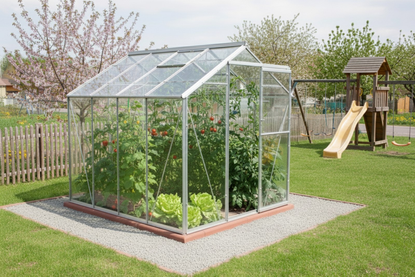 - a 4,48 m hosszú üvegház 2 tetőablakkal rendelkezik