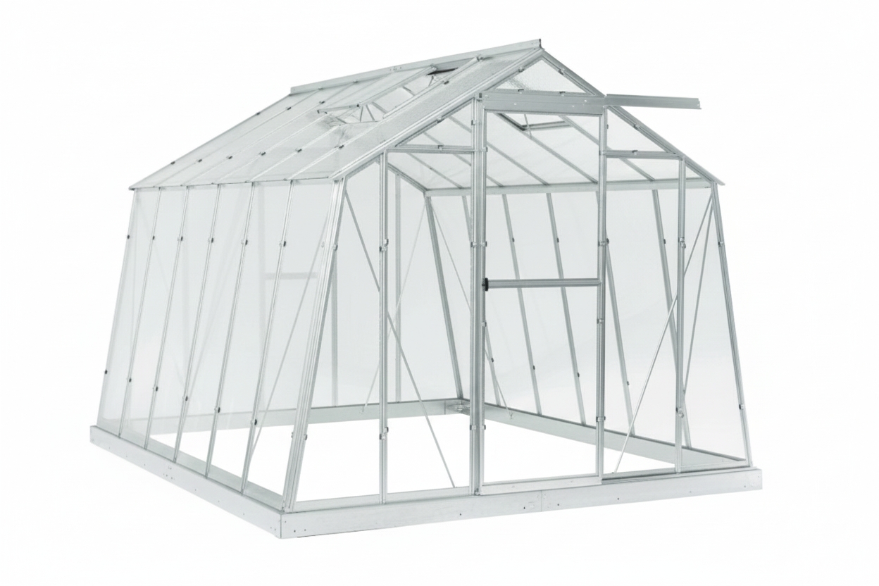 - a szerkezet kiváló minőségű, 1–2 mm vastag tűzihorganyzott lemezből készült (az üvegház egyes részeinek terhelésétől függően)
